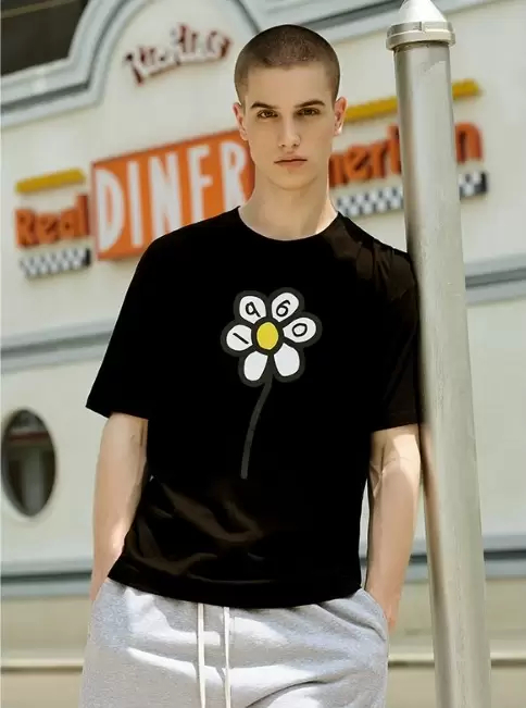 Round Neck Short T Black