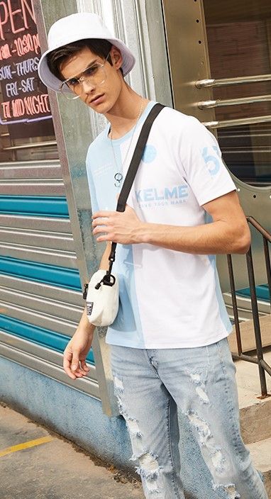 KELME Men's Short Sleeve T-Shirt (White/Light Blue)