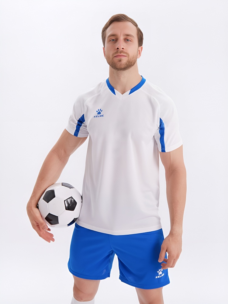 KELME Short-Sleeved Football Suit (White/Blue)